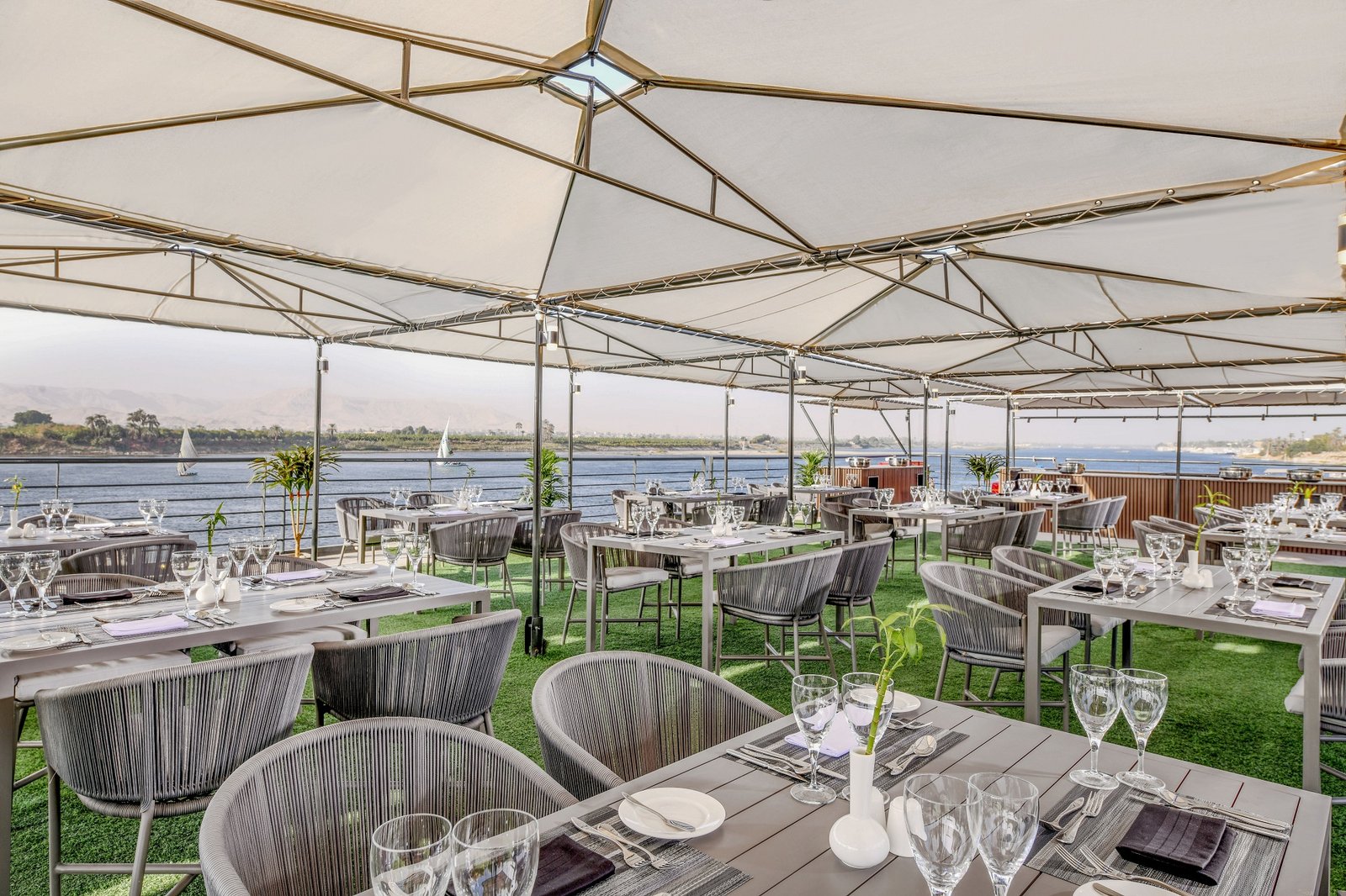 - Ultra-Luxury Suites & Cabins – Elegant design with private balconies and panoramic Nile views.